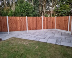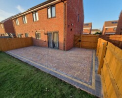Re paved our rear patio and our front footpath Edged both side in concrete and laid a membrane weed control and had all the water redirected away from our house into a drainage system of which they installed, I would highly recommend P&S pavewise